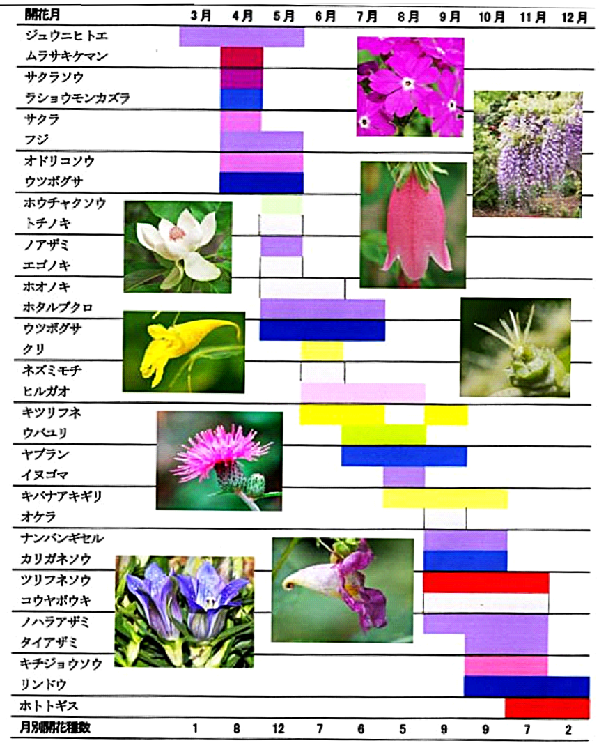 春・初夏・夏・秋・晩秋まで、花期が切れ目なく続くことがわかった。